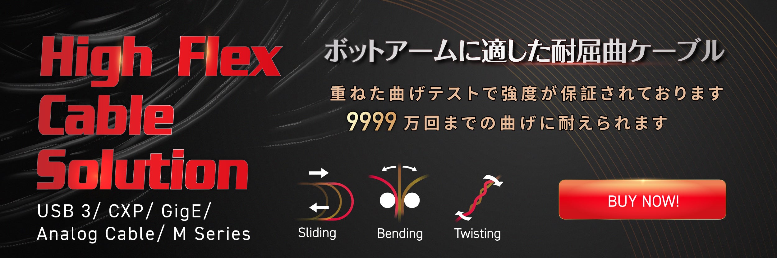 USB 3.0高解像度マシンビジョンカメラに対応。オプションとして、最大15Mのハイエンドスタティックケーブルや高屈曲ケーブルが選べます。