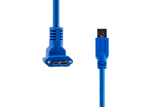高屈曲、ライトアングル(下向き)USB3.2/Type A - Micro Bケーブル スクリューロック付
